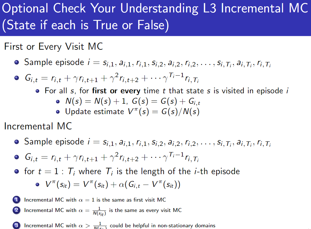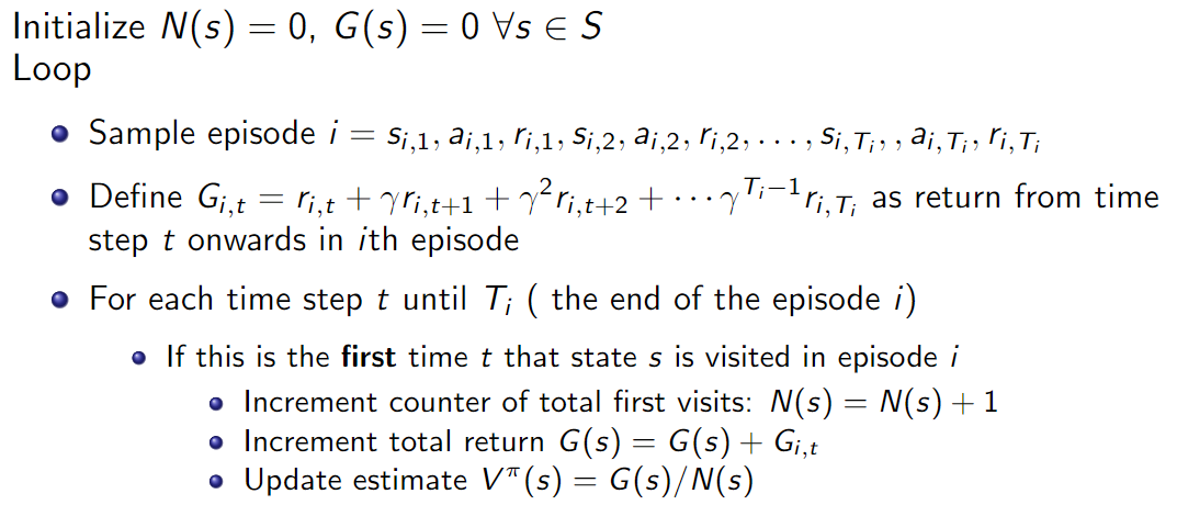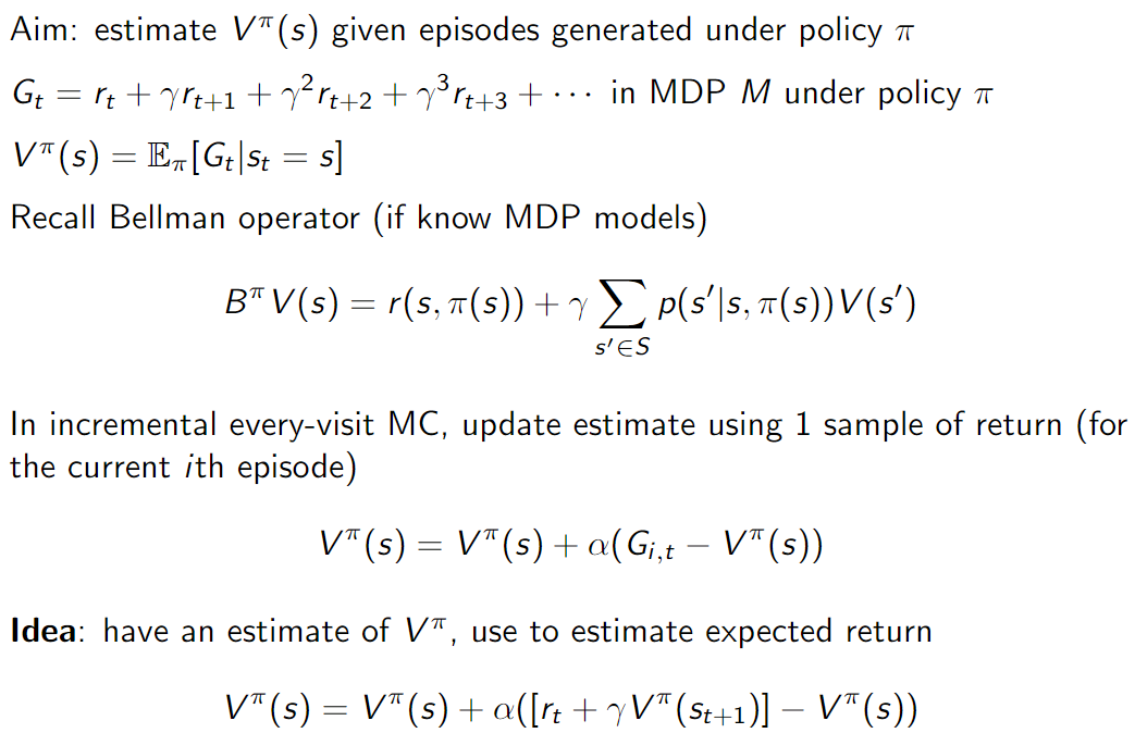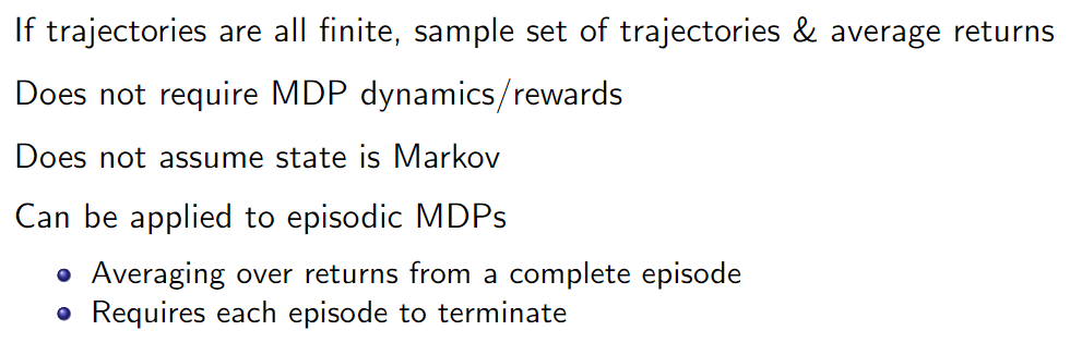 Note: Sometimes is preferred over dynamic programming for policy evaluation even if know the true dynamics model and reward.