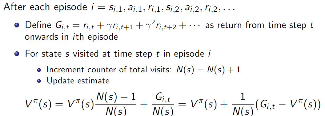 average return 값을 구하는 과정에서 counter값을 사용하는데 매 counter가 +1 될때마다 평균을 구하는건 꽤 비효율적이다. 이를 단순화하기 위해서 incremental average sum을 사용한다.