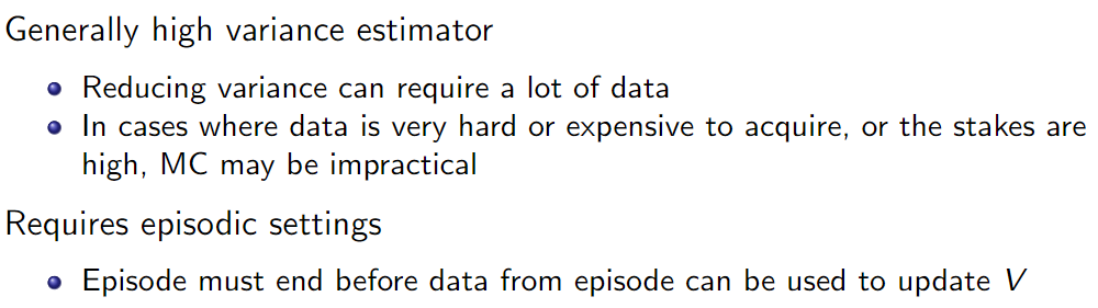 Monte Carlo (MC) Policy Evaluation Key Limitations