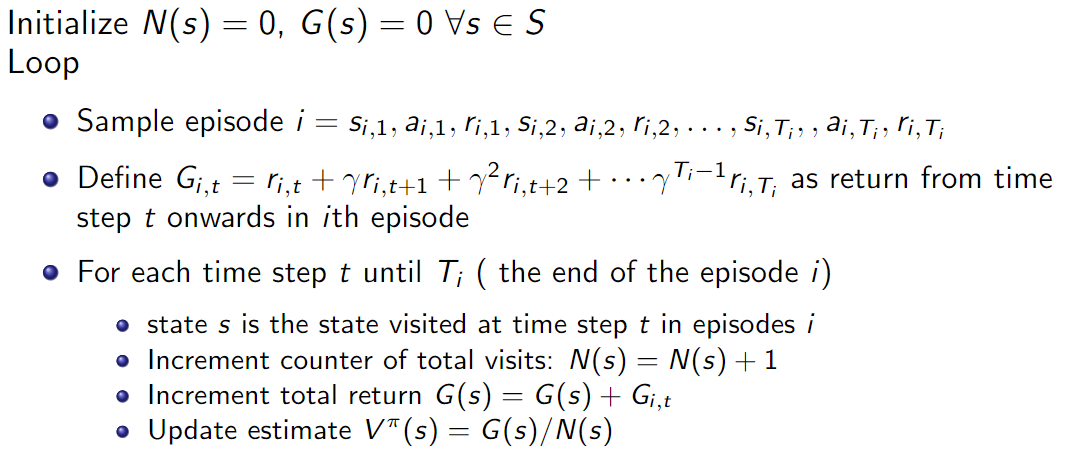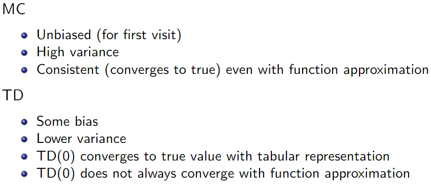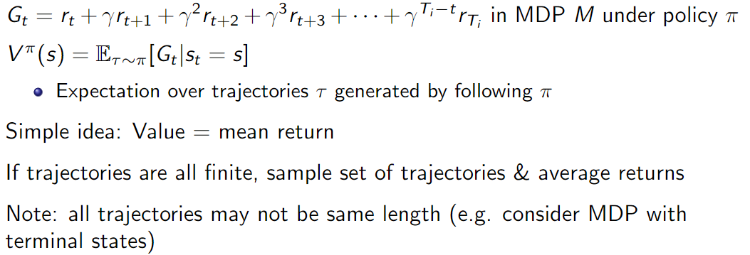 Note: Sometimes is preferred over dynamic programming for policy evaluation even if know the true dynamics model and reward.