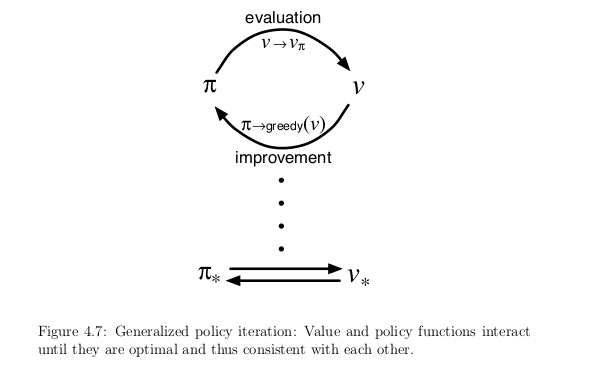 Policy Iteration과 Policy Evaluation이 서로 상호작용하는 개념 자체를 GPI 라고 부른다.대부분의 강화학습은 GPI로 설명 가능하다.