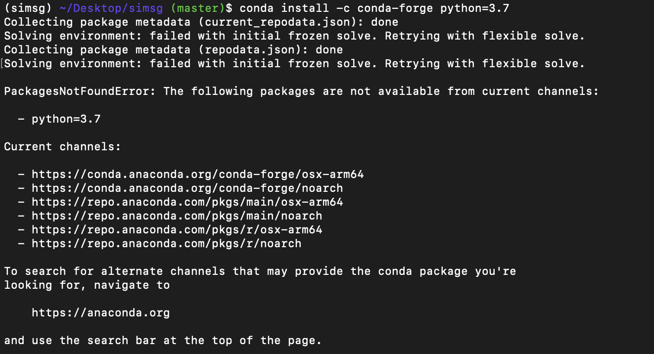 알아보니 mac m1 사용시 python 버전이 3.9.1 이상부터 설치가 된다고 한다. 그러면 어떻게 해야할까.. 다른 os환경, ubuntu 같은 곳에서 진행해야 할것 같다.