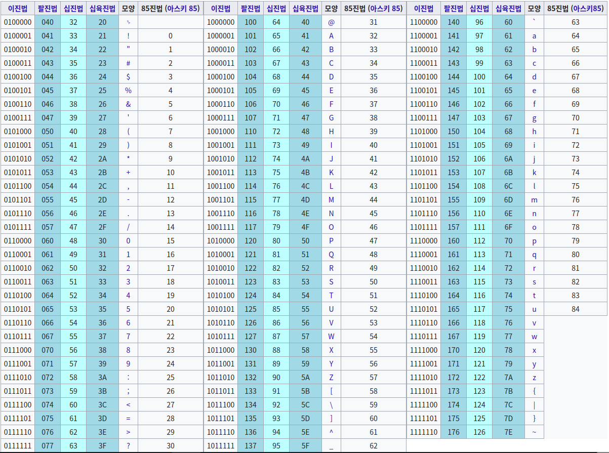 - Python은 ASCII code를 기준으로 str을 해석한다.