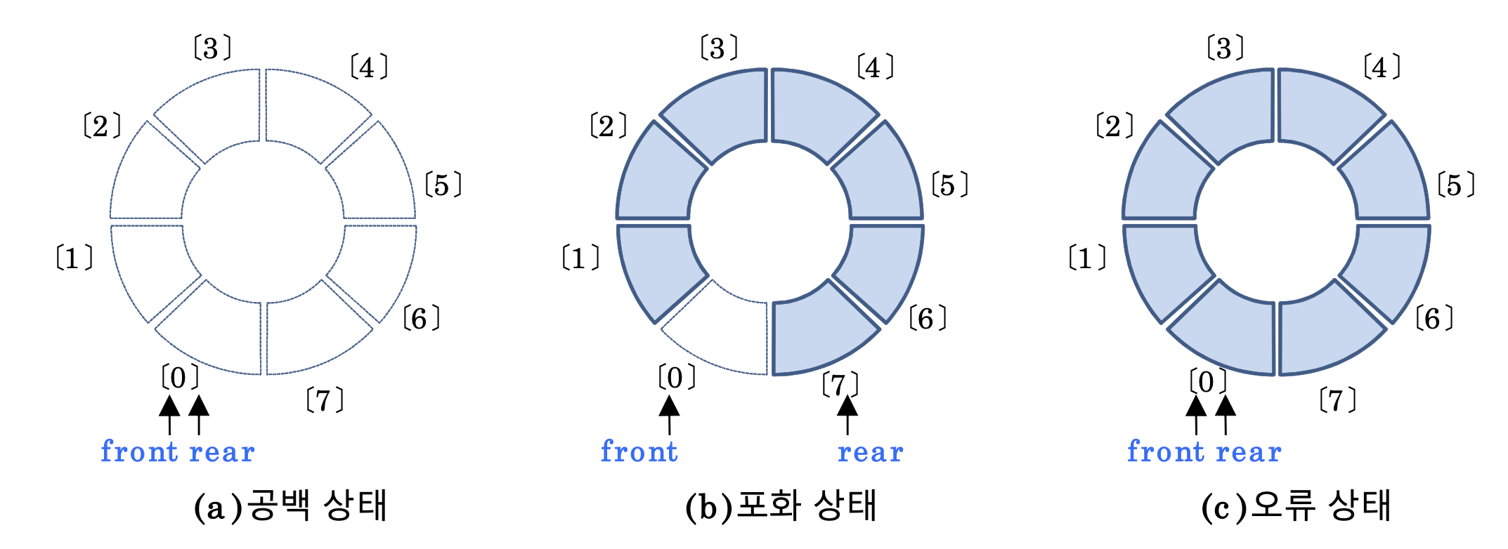 정적 배열이지만 끝과 끝을 이어 원형이라고 생각하고 순환하는 구조를 만든것이다.