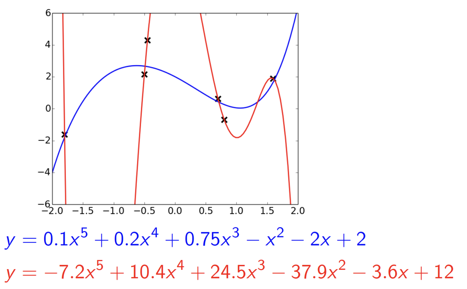 따라서 매개변수의 개수는 Polynomial Regression 에서 hyperparameter로 작용한다. Hyperparameter는 학습이 아닌 실험자가 직접 튜닝하여 정해주어야 하는 값을 의미한다. 보통 검증데이터셋(validation set)을 이용해 해결한다.
