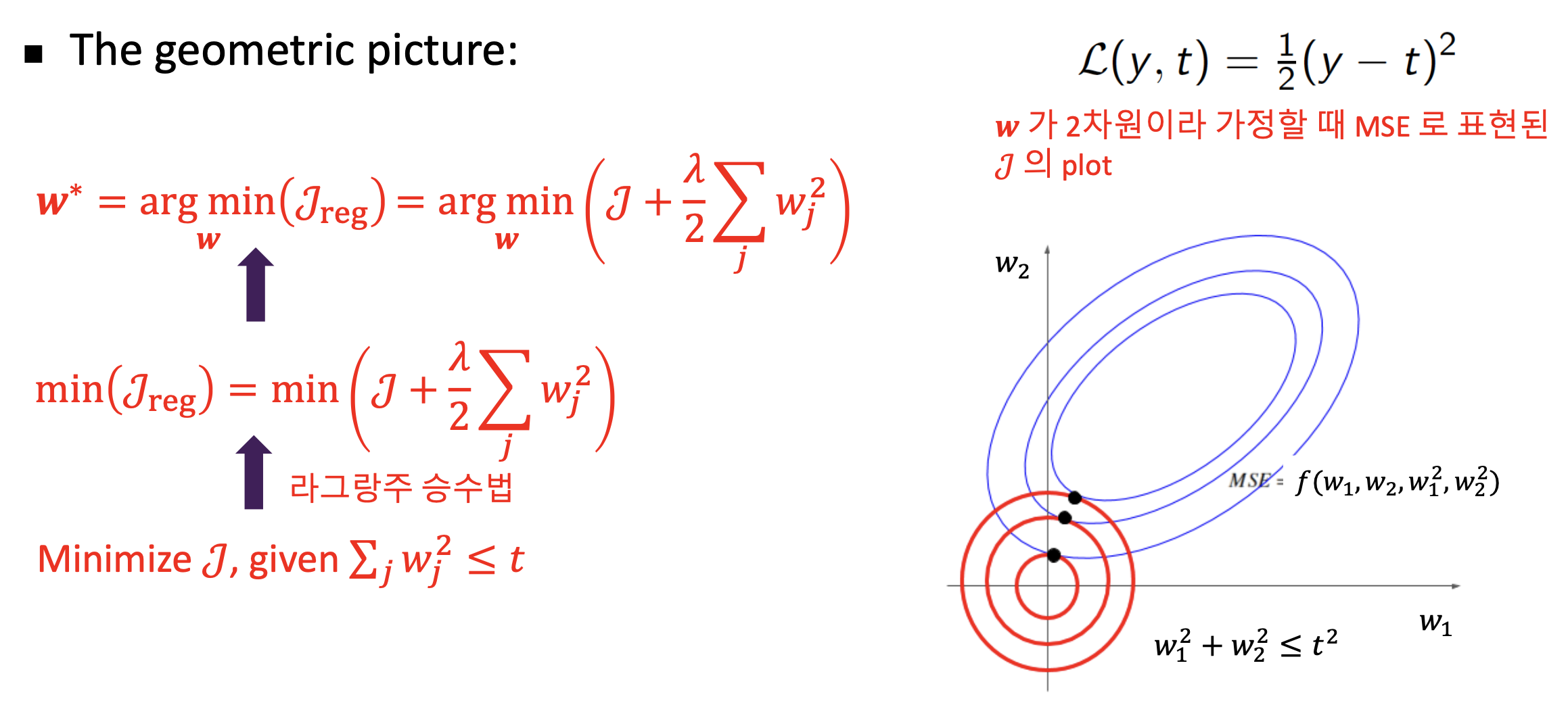 $$J_{reg} = J + \lambda R = J + \frac {\lambda}{2} \sum_{j}{w_{j}}^{2}$$
