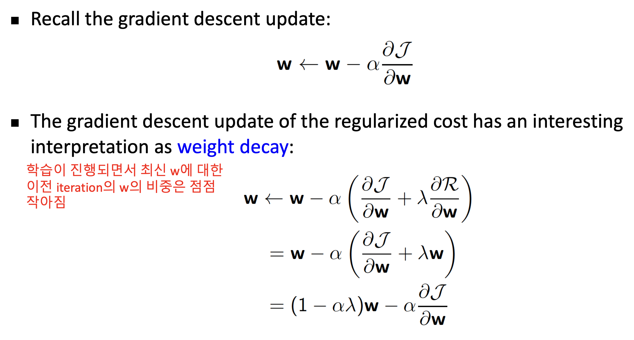 \((1-\alpha \lambda)\)는 weight decay라 불리며 또다른 hyperparameter이다.
