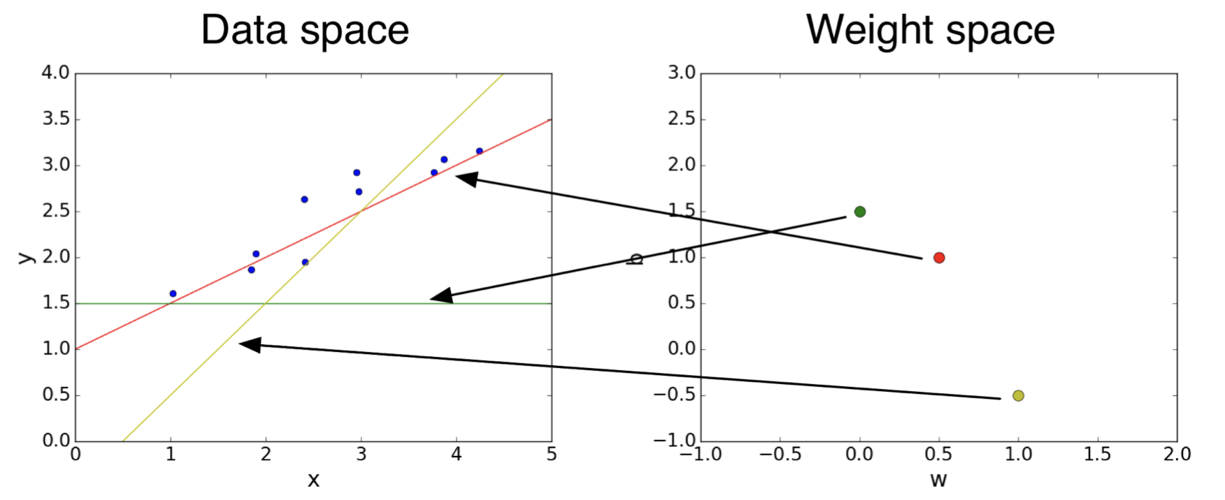 Optimal weight : \(w = (X^{T}X)^{-1}X^{T}t\) [proof link]