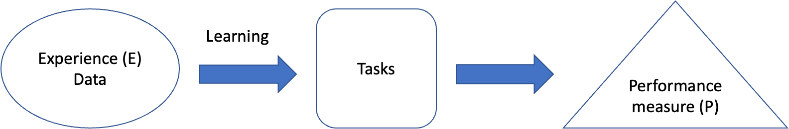 컴퓨터 프로그램은 experience(E)이나 Data를 통해 학습하여 tasks들을 수행하고 performance measure(P)를 나타낸다.