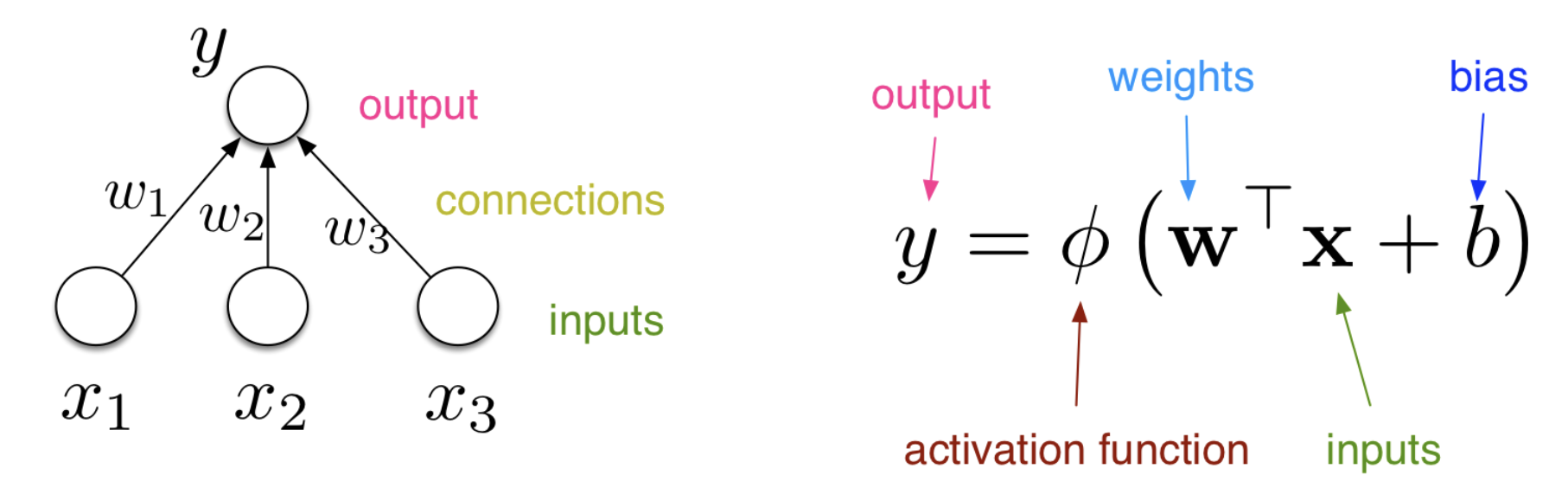 그리고 최종 output은 \(y=f(x)=\phi (Wx+b)\) 형태이다.